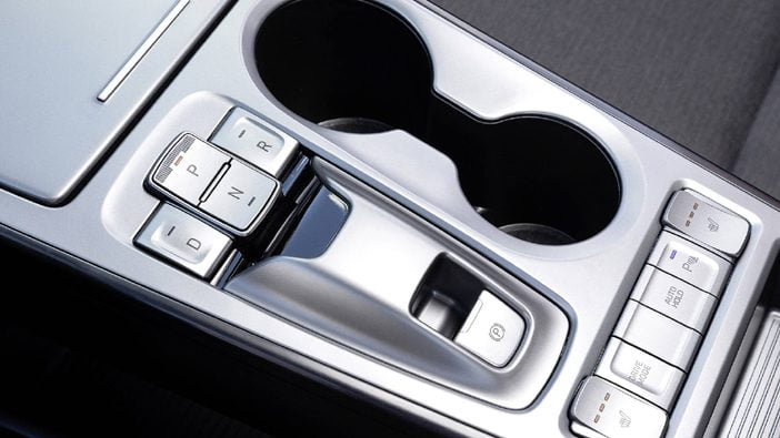 Naast batterijen heeft de Koreaanse autofabrikant ook aardig wat kaas gegeten van beeldschermen. Dat merk je aan de hoge resolutie van het digitale Supervision display, waarop je de batterijstatus en de energiestroom kan volgen. Het wordt aangevuld met voorruitprojectie in de vorm van een opklapscherm en een centraal informatiedisplay. Voor het grootste verschil met de gewone Kona moet je evenwel op de middentunnel zijn. Druktoetsen vervangen daar de klassieke schakelpook. Dat levert extra opbergruimte op. De afwerking is op zich netjes, maar aan de materiaalkeuze voor de meeste interieurpanelen kan je merken dat er bij Hyundai veel boekhouders werken. Gelukkig zitten alle knoppen op de juiste plek.