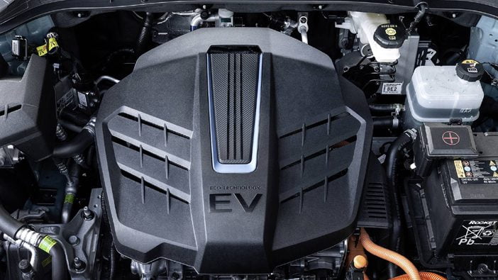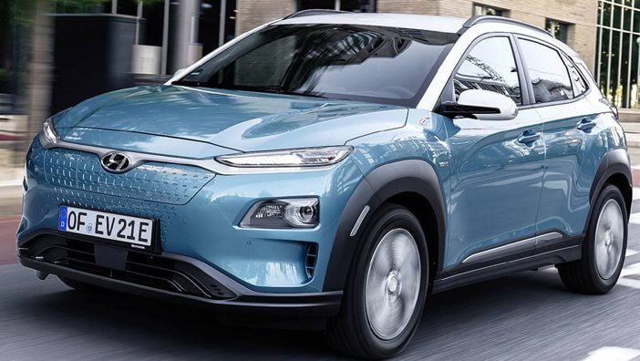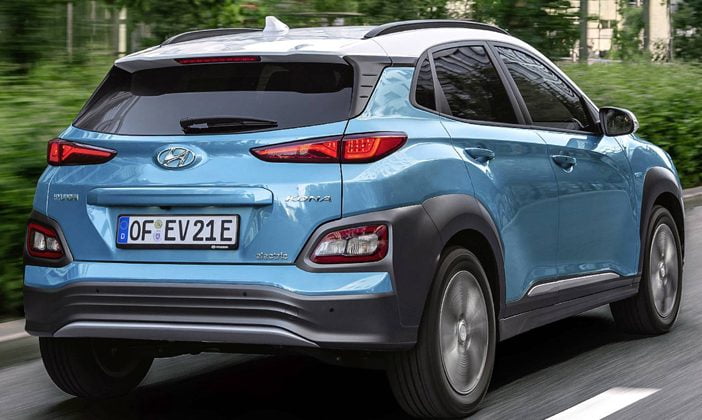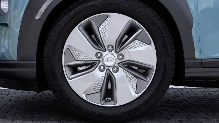 Uiterlijke verschillen met de conventioneel aangedreven versies van de Kona zijn een specifieke bumpers en een dichte grille. De bij de gewone uitvoeringen aanwezige gleuf tussen de grille en de motorkap ontbreekt. Daar heeft de Kona Electric een zilveren strip die doorloopt onder de dagverlichting. Waar de versies met een verbrandingsmotor zijn voorzien van een zwart dak en idem buitenspiegelkappen, zijn die carrosserie-elementen bij de elektrische uitvoering zilverkleurig. De lichtmetalen velgen hebben een onderscheidend design. De Kona Electric is 1,5 centimeter hoger en 1 centimeter langer dan de reguliere versies. Hij weet met 1.660 kilo bijna 500 kilo meer dan de benzine-uitvoering (1.208 kilo). De 64 kWh versie is 204 pk / 395 Nm sterk. Daarmee kan de voorwiel aangedreven cross-over in 7,6 seconden naar 100 km/u sprinten. Zijn topsnelheid bedraagt 167 km/u.