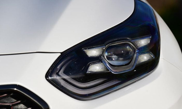Ook aan de voorzijde zie je dat Kia goed naar Porsche gekeken heeft. Zo is de ProCeed voorzien van LED dagverlichting in ijsblokjesvorm (4 stuks). Aan de zijkant zien we dan weer een stylingelement van DS: een haaienvin die halverwege de raamstijl stopt. In metaalkleur ziet die er gelikt uit.