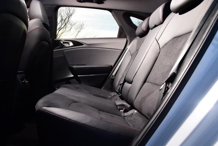 De ProCeed biedt achterin voldoende beenruimte, maar de hoeveelheid hoofdruimte houdt voor passagiers die langer zijn dan 1,85 meter niet over. Maar zo’n krappe bedoening als in de zondagse uitvoering van de Hyundai i30, de Fastback, is het zeker niet. Wel is het behelpen qua overzichtelijkheid van de achterzijde. De kofferbak is daarentegen praktisch van vorm en heeft onder de laadvloer een goed bruikbaar bergvak. Ook zijn er rails om bagage mee vast te zetten en omklappen van de achterbankleuning levert een vrijwel vlakke bodem op.