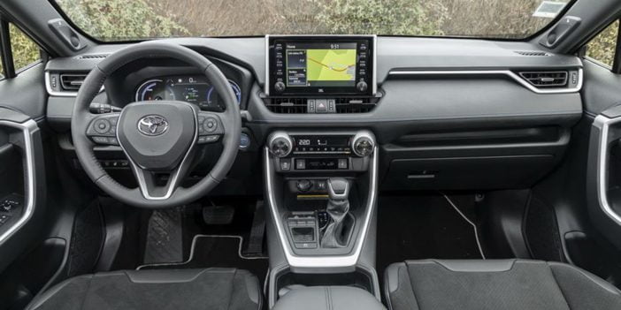 De Toyota heeft een minder extreme interieurstyling dan zijn buitenkant doet vermoeden, maar de kwaliteitsindruk is overduidelijk minder dan die van de Honda, ondanks dat er ten opzichte van de oude RAV4 wel duidelijk progressie is geboekt.