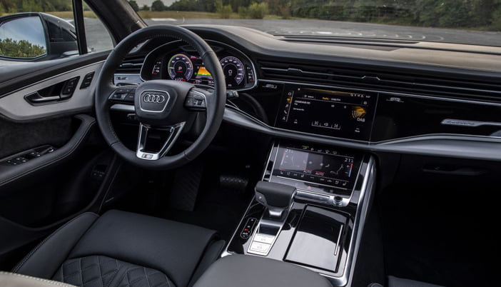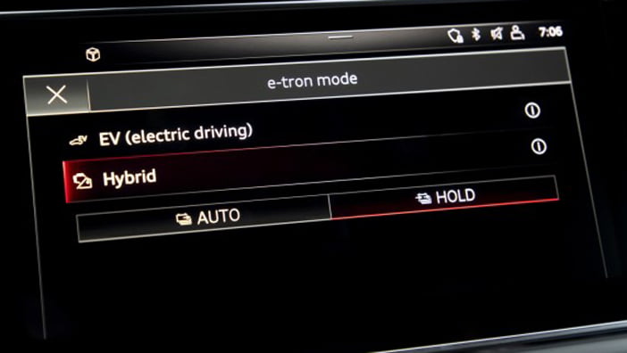 Beide stekker hybride versies van de Q7 starten altijd in de elektrische rij modus. Vervolgens kan handmatig de stand Hybrid geactiveerd worden. Deze rij modus is onderverdeeld in de settings Auto en Hold. In de eerste stand regelt de auto zelf wanneer er wordt overgeschakeld van de verbrandingsmotor naar de elektromotor, of andersom. Selecteer jij Hold, dan behoudt het accupakket de hoeveelheid energie die op het moment aanwezig is. Het vooruitziende managementsysteem kiest voor elk type rit de strategie die het mogelijk maakt om zoveel mogelijk elektrisch te rijden. Ook de ‘zeil’ en de recuperatiefuncties dragen bij aan maximale efficiency. Het rij karakter van de Q7 kan verder aan de persoonlijke smaak worden aangepast via de bekende modi Comfort, Efficiency, Auto, Dynamic en Individual. Hiervoor dient met de knop van het Audi Drive Select systeem te bedienen. Wie de Q7 60 TFSI-e met adaptieve luchtvering bestelt, krijgt daar de standen Allroad én Offroad bij.