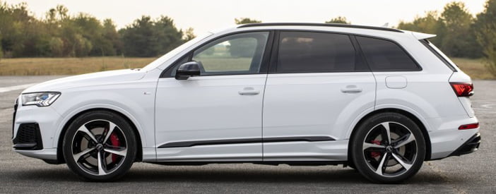 De 2 stekker hybride versies van de Q7 hebben als typeaanduiding 55 TFSI-e en 60 TFSI-e. In beide gevallen doet de 3.0 TFSI unit dienst als verbrandingsmotor. Deze V6 unit is goed voor 340 pk en 450 Nm. Hij krijgt assistentie van een elektromotor die in de 8-traps Tiptronic automaat is verwerkt. Het lithium / ion accupakket heeft in zowel de 55 TFSI-e als in de 60 TFSI-e een capaciteit van 17,3 kWh. De elektrische actieradius is dan ook identiek: 43 kilometers volgens de WLTP -meetnorm.