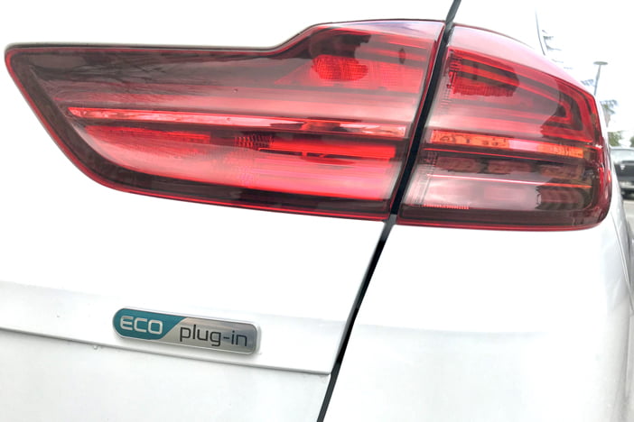 Je moet goed kijken om de stekker hybride versie te kunnen onderscheiden van de gewone Ceed Sportswagon. Dit betekent dat ook de Plug-in koper een elegant vormgegeven combi krijgt met een aerodynamisch vormgegeven grille, sportieve bumpers, LED koplampen en dagverlichting is ijsblokjes design. Toch zijn er ook verschillen. Zo blijkt de grille bij nadere inspectie gesloten te zijn en krijg je bij de stekker hybride versie standaard de GT-Line bodykit. Om elk misverstand weg te nemen, zit er op de achterklep een badge met de in groen geschreven tekst “Eco Plug-in”.