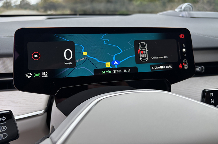 De bestuurder heeft een compact display dat dienst doet als digitaal instrumentarium. Het scherm is niet altijd even goed leesbaar, maar gelukkig is er het head-up display, dat de meest essentiële informatie op de voorruit projecteert, als alternatief.