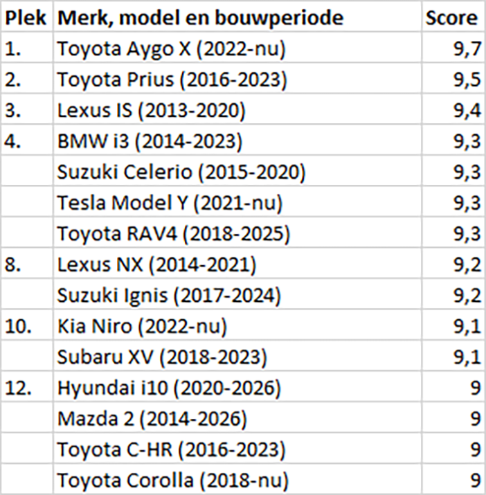 Uit bovenstaand overzicht blijkt dat je voor de meest betrouwbare auto’s in Japan moet zijn. En dan vooral bij het Toyota concern (dus inclusief Lexus) en haar samenwerkingspartners (Mazda, Subaru en Suzuki). Daar valt geen speld tussen te krijgen.