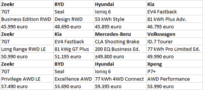 Zeekr gaat de 7GT bij ons leveren in 2 versies: met achterwielaandrijving en een enkelvoudige motor van 421 pk en als ‘AWD’ met een extra krachtbron en een systeemvermogen van 646 pk. Het maximum koppel bedraagt 710 NM. In deze vorm beschikt de 7GT over luchtvering en een 100 kWh groot NMC accupakket. Deze batterij is een optie voor de versie met achterwielaandrijving want die wordt standaard geleverd met een kleinere LFP accu van 75 kWh. Officiële WLTP cijfers voor de actieradius zijn er nog niet, maar reken op maximaal 519 kilometer voor de basisversie en op 655 kilometer voor de RWD uitvoering met de grotere 100 kWh batterij. De topvariant heeft dezelfde accu, maar vanwege zijn tweede motor, daalt het bereik naar 558 kilometer. Het is de enige versie die standaard op 20 inch in plaats van 19 inch wielen staat.
