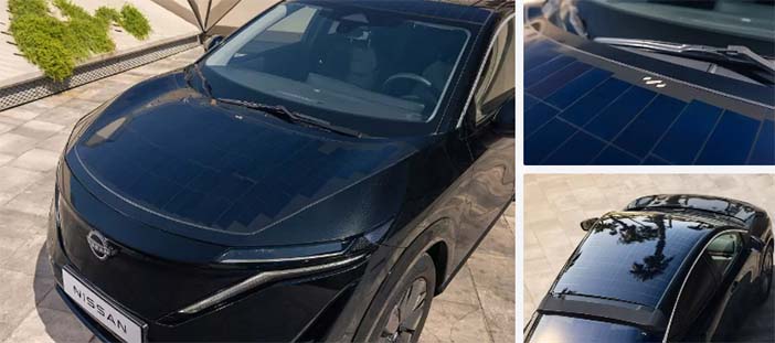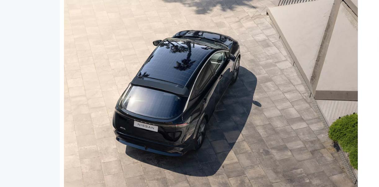 De aangepaste Ariya heeft 3,8 vierkante meter aan zonnecellen, waarvan het gros op het dak, schrijft Nissan. De cellen op de achterklep zijn geïntegreerd in de achterruit. Het gaat om 480 exemplaren met een maximaal vermogen van 700 Watt.