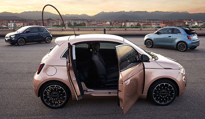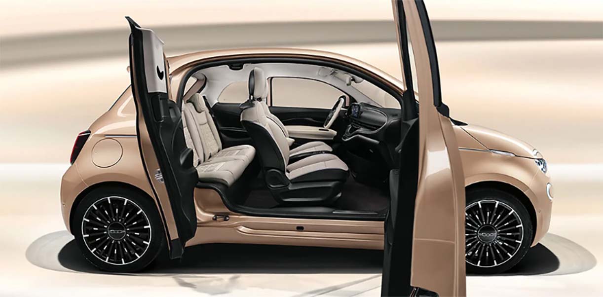 De Icon en La Prima varianten van de 500e met 42kWh batterij zijn ook beschikbaar als Cabrio of 3+1 met kenmerkende derde portier aan de passagierskant (zie foto).