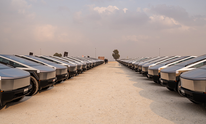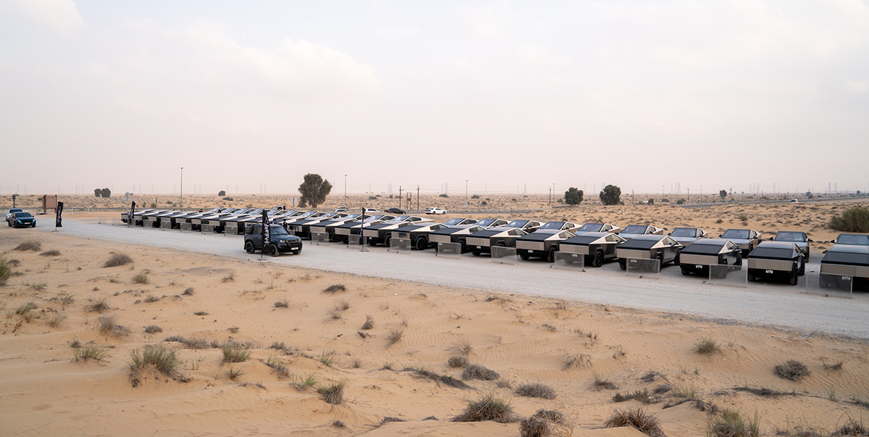 Tijdens een lanceringsevenement in het woestijngebied Al Marmoom in Dubai werden de 63 exemplaren van de Cybertruck overhandigd. Daarbij werd voor de gelegenheid een lichtshow opgevoerd. Want ook als de verkoop sterk tegenvalt, geldt voor Elon Musk: the show must go on. Tesla heeft inmiddels de configurator voor de Cybertruck ook in Saoedi-Arabië, Qatar, Jordanië en Israël gelanceerd.