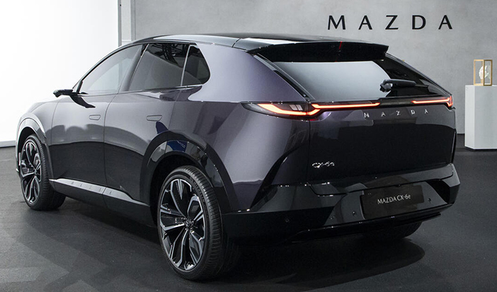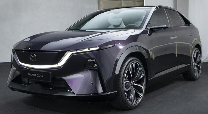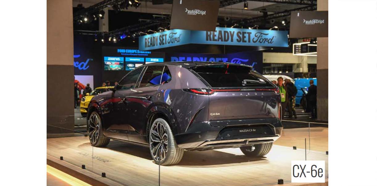 is de productieversie van de EZ-60 conceptstudie die in het voorjaar van 2025 op de autoshow van Shanghai te zien was. De elektrische SUV is een vrucht van de samenwerking met Changan, die het model in China als Deepal 07 verkoopt. Qua formaat valt de CX-6e met een lengte van 4,85 meter tussen de CX-60 en CX-80 in. De aandrijving van de achterwielen wordt verzorgd door een 258 pk en 290 Nm sterke elektromotor. De CX-6e heeft een LFP-accu van 78 kWh waarmee 484 km rijbereik valt te realiseren. Snel opladen kan met 195 kW.