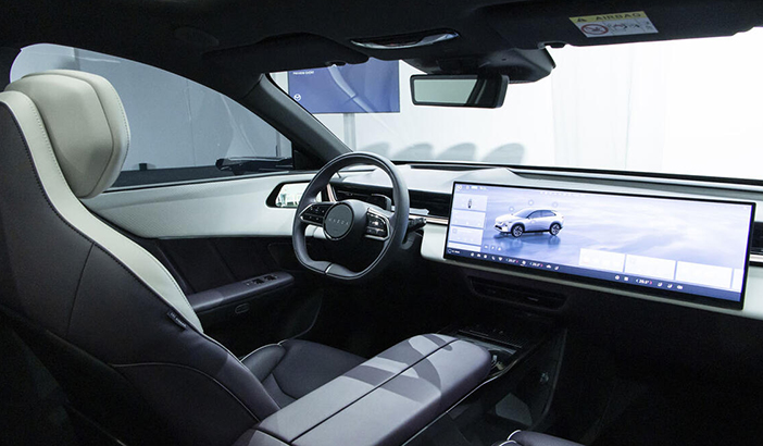 Het interieur ziet er verzorgd uit en kenmerkt zich door een strak vormgegeven dashboard dat gedomineerd wordt door een asymmetrisch gemonteerde display van maar liefst 26,5 inch dat doorloopt tot het boordplank gedeelte voor de bijrijder. Aldaar kan informatie worden geprojecteerd die de bestuuder alleen maar zou afleiden van zijn taken.