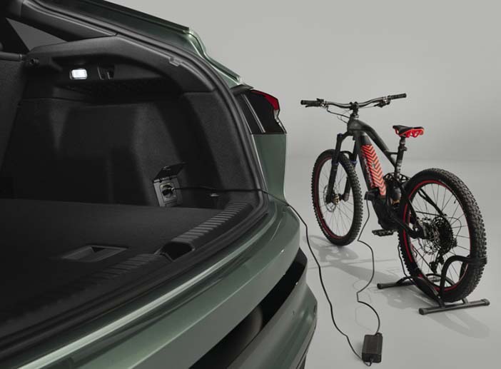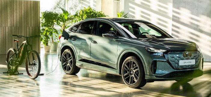 Daarnaast is de Audi Q4 e-Tron het eerste model van Audi dat bi-directioneel laden ondersteunt. Daarbij kan zijn accupakket zowel energie van het net ontvangen als terug leveren aan externe apparaten. De Vehicle-to-Load (V2L) functie maakt het mogelijk om bijvoorbeeld e-bikes op te laden via een stroomaansluiting in de kofferbak of met behulp van een adapter op de laadpoort.