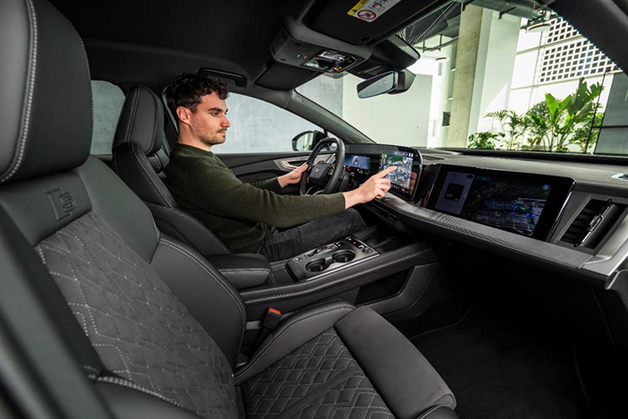 Het vernieuwde interieur van de Q4 e-Tron heeft volgens Audi een flinke stap voorwaarts gemaakt qua comfort en veelzijdigheid. Zo heeft het model nu net als tal van andere modellen van het merk de nieuwe ‘digital stage’: een panoramisch display met een 11,9 inch instrumentencluster en een 12,8 inch MMI touch display dat alles overzichtelijk houdt. Optioneel is er tevens een 12 inch passagiersdisplay beschikbaar. Met het nieuwe One Connected Infotainment verbetert Audi de comfort- en entertainmentfuncties, terwijl de intelligente Audi assistent voertuigfuncties via spraakopdrachten kan bedienen. Dankzij ChatGPT-integratie kunnen inzittenden informatie opvragen en op een natuurlijke manier met de auto communiceren.