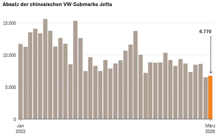 De productieversie van deze Jetta X moet nog dit jaar in China op de markt komen. Volkswagen zegt te werken aan een gamma van in totaal 4 modellen. Die vallen allemaal in de zogeheten ‘New Energy Vehicle’ categorie oftewel zijn alle 4 voorzien van een oplaadbare accu. In 2028 moet het gamma van Jetta compleet zijn. Dat kan duidelijk worden of het tij, goed zichtbaar in bovenstaande grafiek, inderdaad gekeerd kan worden door Jetta.