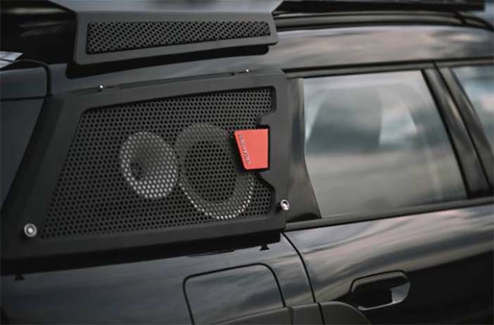 Maar het grootste deel van de aanpassingen heeft betrekking op het geluidssysteem. De 2 exemplaren van de Mini Countryman zijn namelijk omgebouwd tot reuzeluidsprekers. Afzonderlijk of samen kunnen zij voor een mobiel concertpodium zorgen.
