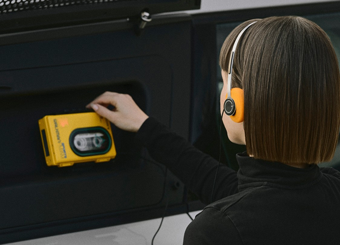 De achterste zijruit werd vervangen door een audiosysteem dat speciaal voor gebruik buitenshuis ontworpen is. De installatie bestaat uit tweeters en midden toners, terwijl er extra subwoofers in de kofferbak werden geplaatst. Omdat ‘retro’ tegenwoordig helemaal in is integreerden Vagabund in de Mini ook een 3D-geprint compartiment met een koptelefoon en een Walkman.