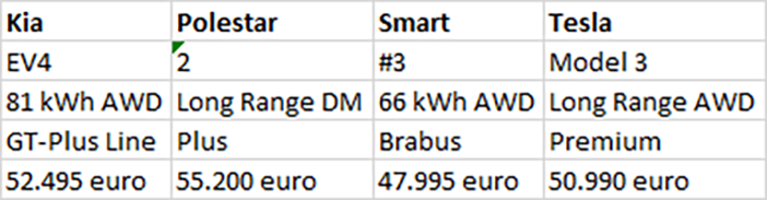 In het geval van het maken van een prijs vergelijking van de AWD uitvoeringen van de Kia modellen EV3, EV4 en EV5, heeft jouw verslaggever duidelijk voor de laatste handelswijze gekozen. Bij de EV3 en EV5 was het maken van een prijs vergelijking relatief ‘appeltje, eitje’. In de zin dat hoge elektrische (SUV) modellen, zoals de EV3 en EV5, al snel concurrenten hebben die in dezelfde vijver vissen. Dan is een vergelijking snel gemaakt. Maar bij de EV4 is dat lastiger. Die onderscheidt zich van zijn broers door een duidelijk lagere carrosserie en het ontbreken van een SUV karakter. De EV4 is eigenlijk een soort hatchback en bij dergelijke auto’s ligt de optie van vierwielaandrijving veel minder voor de hand.