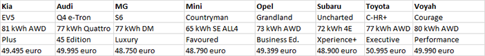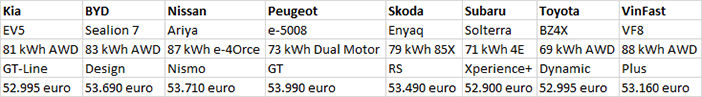 De prijzen van de vierwiel aangedreven Kia EV5 beginnen bij 49.495 voor de Plus uitvoering. Daarna komen de 51.495 kostende Plus Advanced en de GT-Line, waar een prijskaartje van 52.995 euro aan hangt.