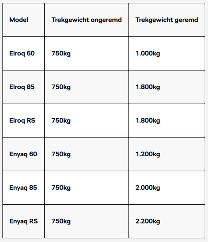De aanpassing vindt plaats in het kader van het nieuwe modeljaar van de Elroq en Enyaq. Door aanpassingen aan het thermisch beheer en de software van de elektrische aandrijflijn kunnen beide Skoda modellen nu zwaardere lasten trekken. Volgens de importeur van het Tsjechische automerk maakt dit de overstap naar elektrisch rijden nog aantrekkelijker. Daar zit wat in, want de verhoging van het trekgewicht verkleint de kans dat automobilisten concessies moeten doen als het gaat om de vraag met hoeveel ‘caravan’ of ‘aanhanger’ zij op pad willen gaan.