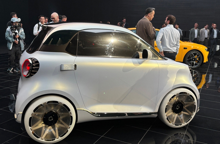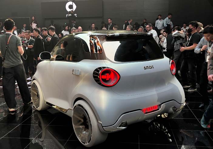 De moderne, Chinese interpretatie van dit kleine stadswagentje heet #2. Het getal in de modelnaam is klip en klaar een verwijzing naar de Fortwo. Op de Beijing Auto Show toont Smart een conceptversie van de #2. Het ontwerp is overduidelijk een eerbetoon aan zijn stamvader: de door het Mercedes designteam ontworpen carrosserie met slechts 2 zitplaatsen (de Duitsers zijn nog steeds voor de helft eigenaar van Smart; de in de koplampen geïntegreerde coördinaten verwijzen niet toevallig naar het hoofdkantoor in Singelfingen), de wielen in de uithoeken van het koetswerk, het in een contrasterende kleur uitgevoerde dak en een lengte van slechts 2,79 meter: dat zijn allemaal elementen die verwijzen naar het originele model uit 1998. Dat de tijd sindsdien niet heeft stilgestaan, kunnen we zien aan onder andere de led pixels. De verbrandingsmotoren hadden aan het eind van de carrière van de laatste (derde) generatie Fortwo al afgedaan, dus ook de #2 is volledig elektrisch.